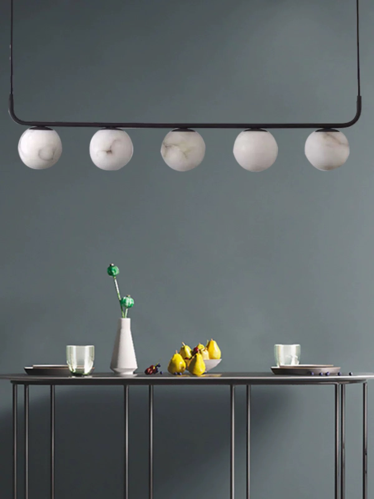 Enhance your restaurant or bar with this adjustable chandelier. Featuring a natural marble ball design, it adds a touch of elegance and sophistication. The adjustable height provides perfect lighting for meal service and creates an inviting ambiance. Durable construction ensures lasting beauty and performance.