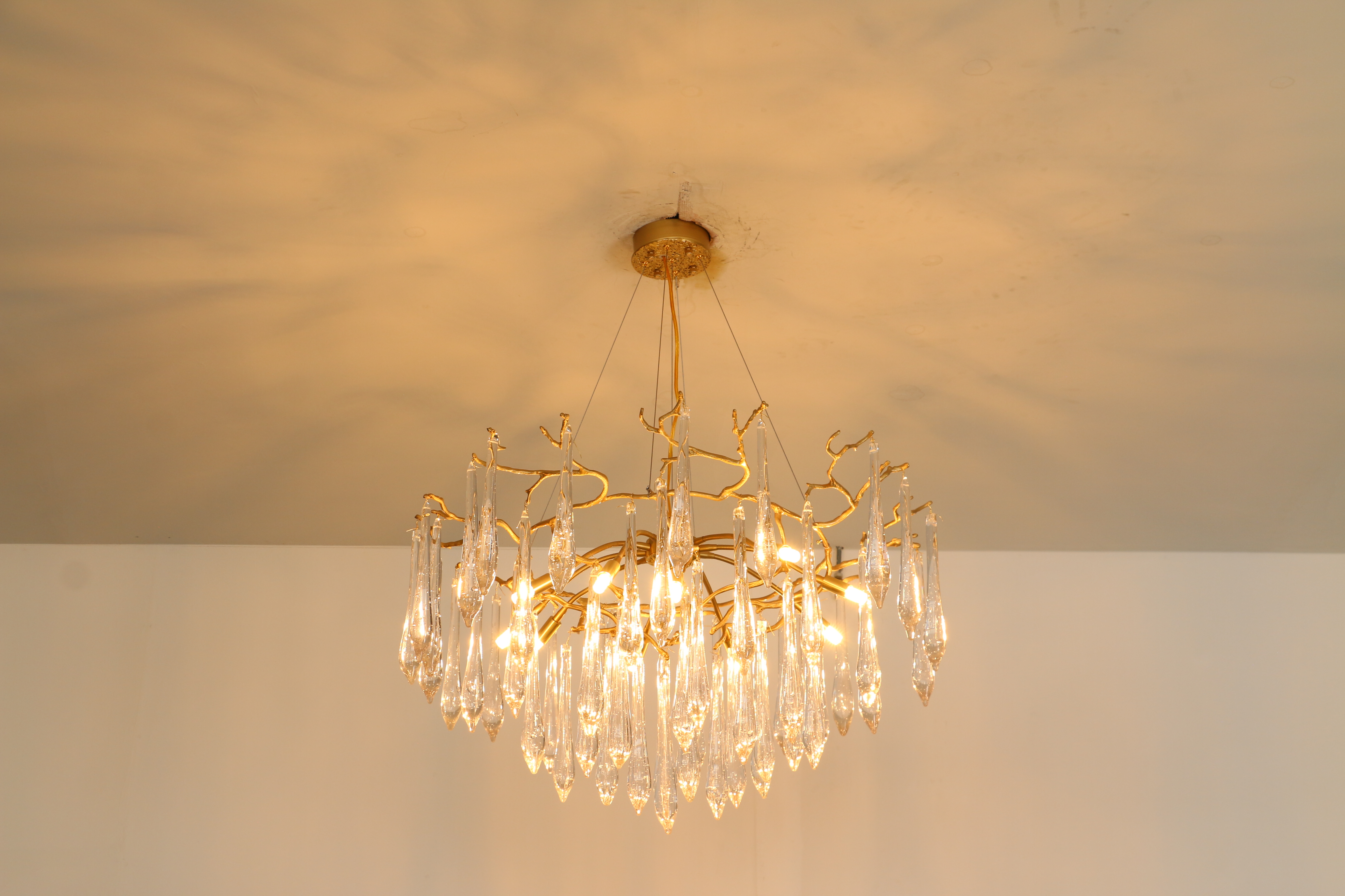 The water drop shape glass rod has exquisite craftsmanship and transmits light evenly, softly and without glare.